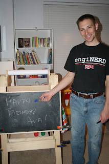 Just after Ava woke up this morning, we gathered for early morning birthday present opening. She was pretty excited to see the gift Daddy had made for her.