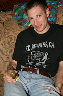 I don’t have a picture of the two of us, but I grabbed this shot of Matt the day after our anniversary. We were having a very quiet day and snacking, watching movies, and chilling out after a long couple of weeks. Even with all the amazing fun we have, days like the one pictured here are still my favorite.