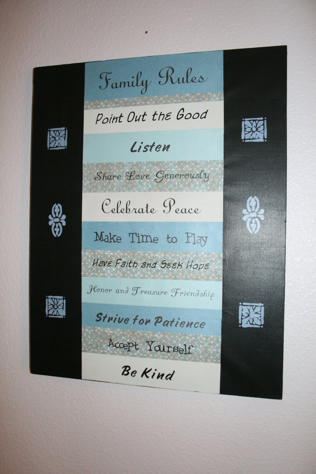 Maybe the best part of this project was that Matt and I sat down one night and really discussed these rules. (Believe you me, the thesaurus and dictionary got a lot of use that night!) We both realize that words have power and wanted to choose just the right ones to guide our family. These rules really are what we hope our family will value and the way we want to be reminded to live each day. It was nice to have that time with him, to reconnect about our purpose, and to have a tangible result of that work to help us remember.