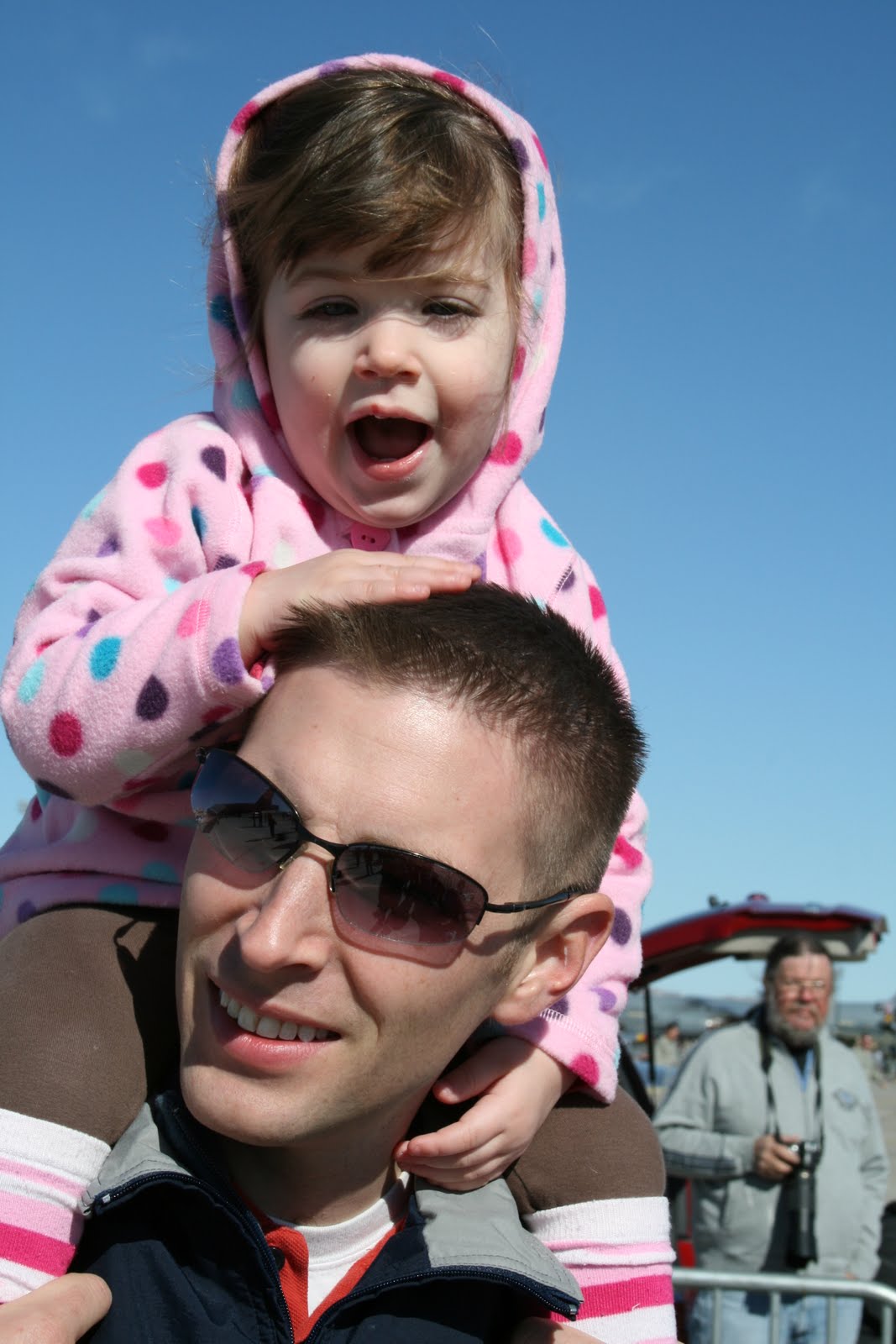 We braved the wind and cold to take Ava to the Nellis airshow. She loved seeing all the airplanes and, when we let her “pet” the jets, she would say “Nice jet. Nice jet.”
