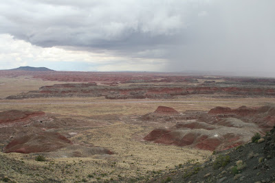 As we were finishing up our lunch, we heard the thunder start to roll in. Probably a once-in-a-lifetime opportunity to watch a thunderstorm roll in over this beautiful desert landscape. It rained for the remainder of our drive to Albuquerque that day. A week later, as we drove back, water was still standing in puddles in this area from the storm. Very cool. We *heart* national parks.