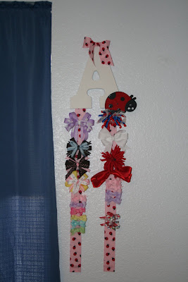 Window tie-backs with ladybug print, hairbows will hang over changing table/dresser