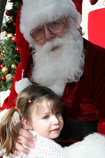 We took Ava to visit Santa Claus the weekend before Christmas, fully expecting the same terrified toddler we had last year. Instead, she snuggled right in and we got a boatload of adorable pictures.